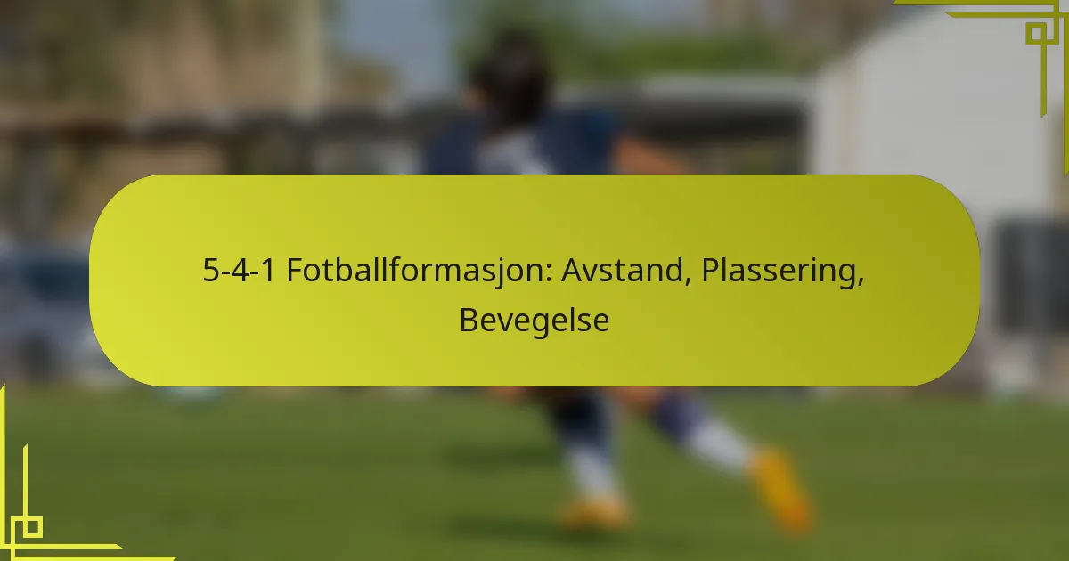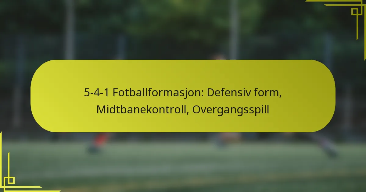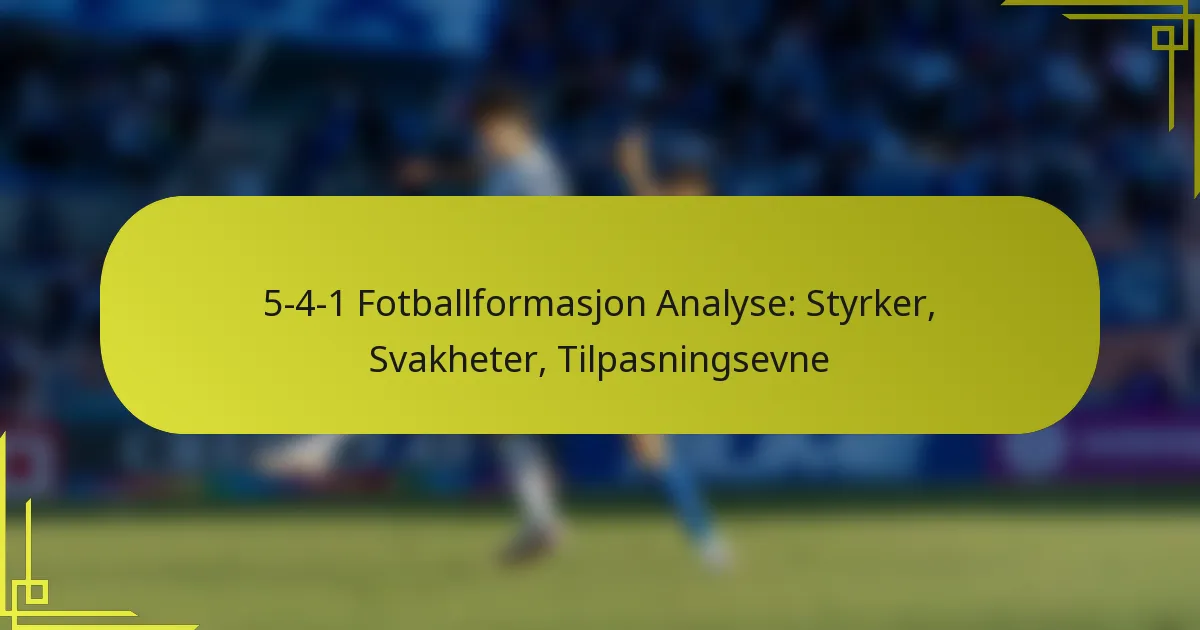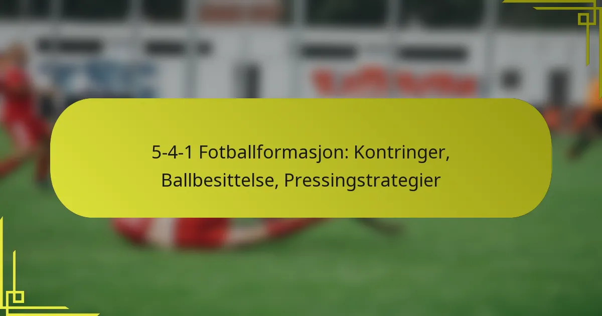 5-4-1-formasjonen i fotball er en strategisk tilnærming som prioriterer defensiv stabilitet samtidig som den muliggjør raske kontringer. Med fem forsvarsspillere, fire midtbanespillere og en enslig spiss, er dette oppsettet ideelt for lag som ønsker å motstå press og utnytte raske overganger. Imidlertid kan det også by på utfordringer, som sårbarhet for høyt press og begrensede angrepsalternativer.