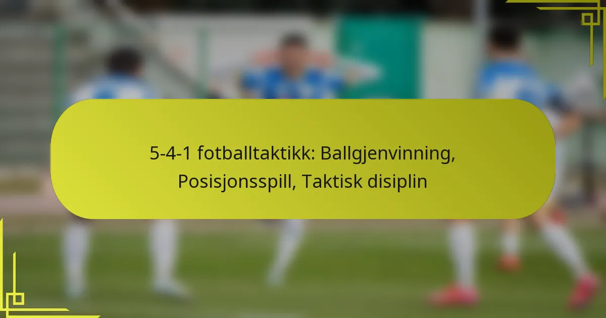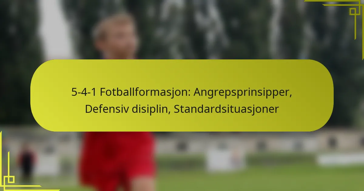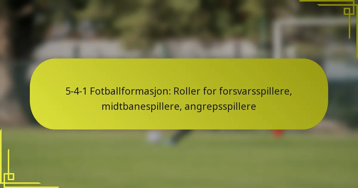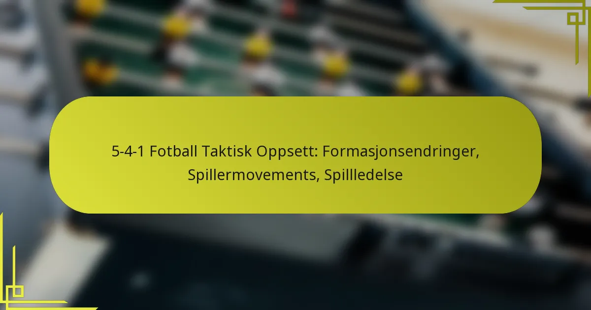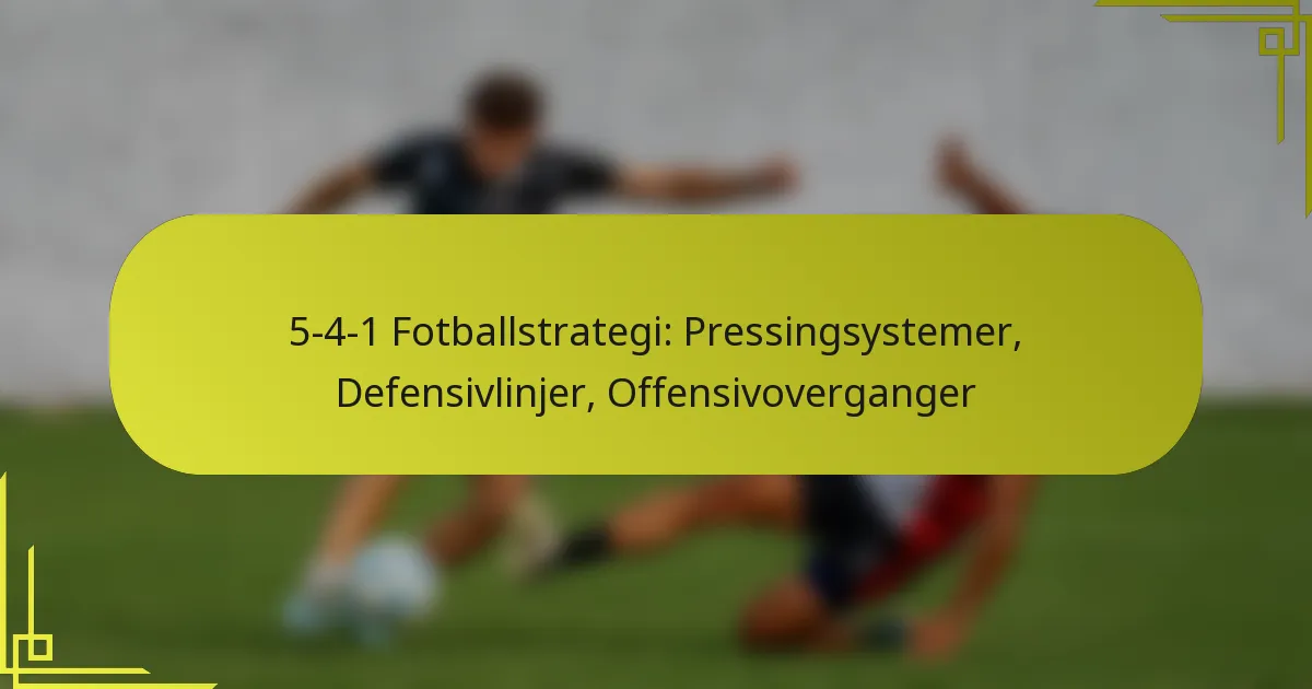 5-4-1-formasjonen i fotball er en strategisk tilnærming som prioriterer defensiv stabilitet samtidig som den muliggjør raske kontringer. Med fem forsvarsspillere, fire midtbanespillere og en enslig spiss, er dette oppsettet ideelt for lag som ønsker å motstå press og utnytte raske overganger. Imidlertid kan det også by på utfordringer, som sårbarhet for høyt press og begrensede angrepsalternativer.